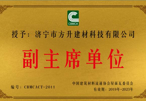 2019年7月公司被中國.建筑材料流通協會屋面瓦第二次委員會授予副主席單位,公司總經理常明皎被聘為中國建筑材料流通協會屋面瓦委員會副主席。